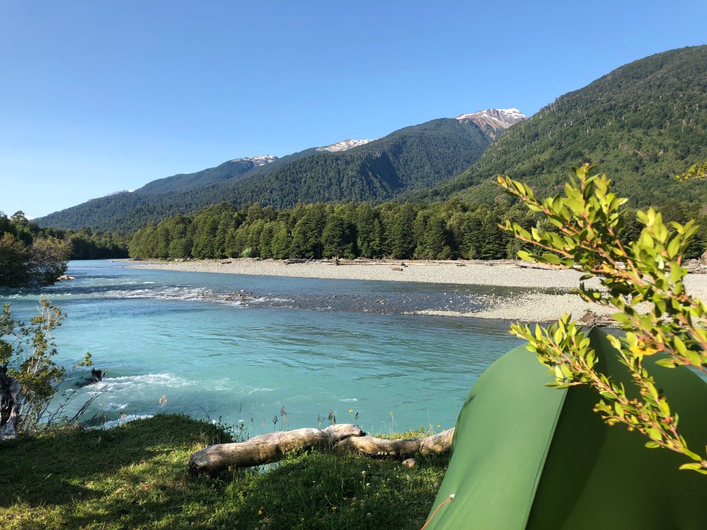 Un levé inhabituel à 6h pour prendre le bus à 8h qui m’amène 1h30 plus tard au début du sentier. Je rencontre Ali, une américaine avec qui je vais faire cette première étape. Le sentier suit la rivière et parcours un forêt de coyques, un arbre que l’on voit partout ici. Après 4hl’etape du jour est atteinte en arrivant au camping de Rio turbio. Au chili tous les treks officiels respectent un tracé défini et des campings identifiés. On est pas sensé sortir des traces.