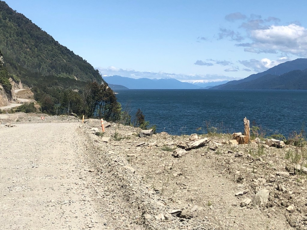 Encore 100km de bitume et de ripio, cette route de gravier plus ou moins tassé, plus ou moins en tôle ondulée et j’arrive à Hornopiren en 2 jours. A chaque fois que je retrouve le bitume je jubile, la lutte s’arrête pour quelques km. Car la route est une suite de montée et de descente raide.