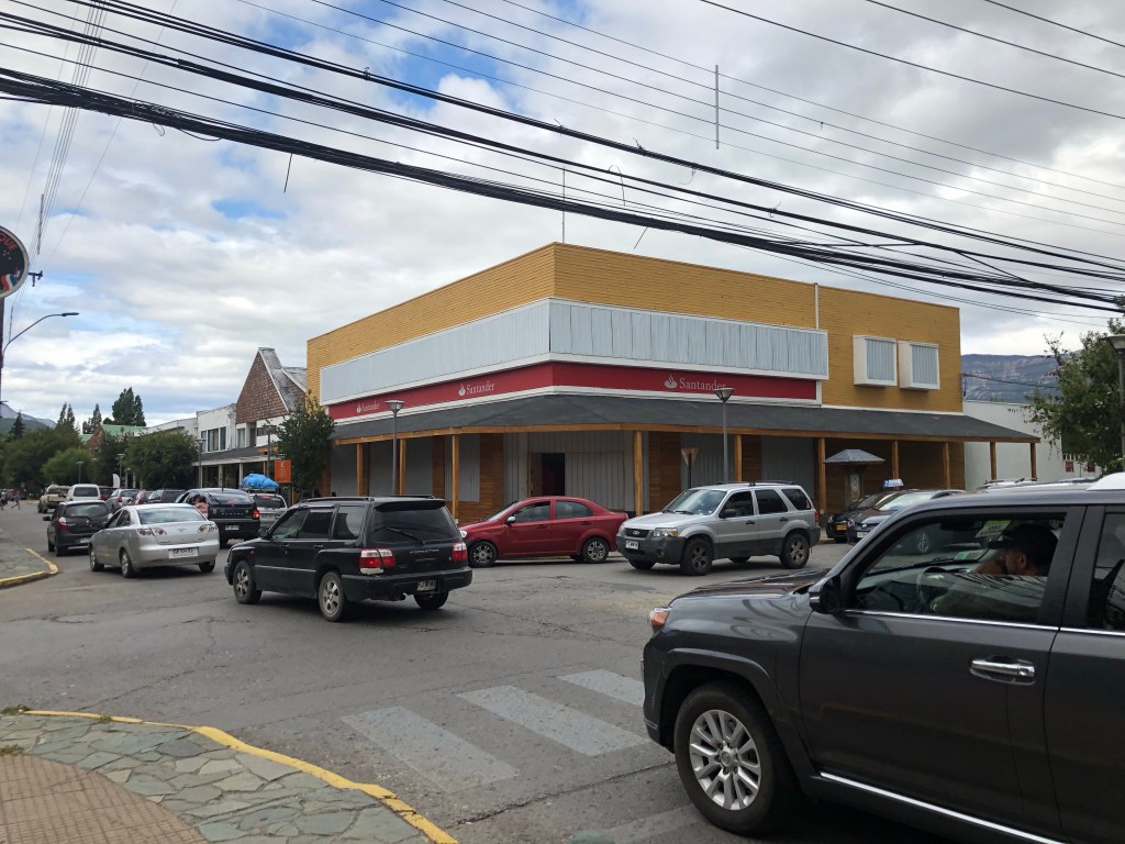 Les protestations au Chile se passent même à coyhaique. Les banques se barricadent comme à cette angle de rue