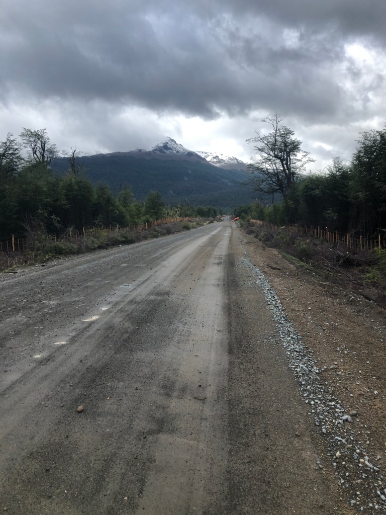 Et enfin un panneau attendu: carretera austral, le voie à suivre qui me conduira 1200km plus loin en Argentine. Ensuite encore quelques centaines de km et Punta Arenas. On se motive comme on peut sous la pluie.