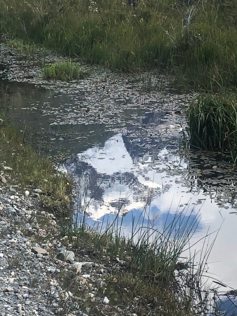 Au dessus de la végétation le vent s’est déclaré. Il souffle fort, 60km/h avec des rafales à 80km/h qui pousse les pieds quand tu les lèves. Mais j’arrive à ce lac.